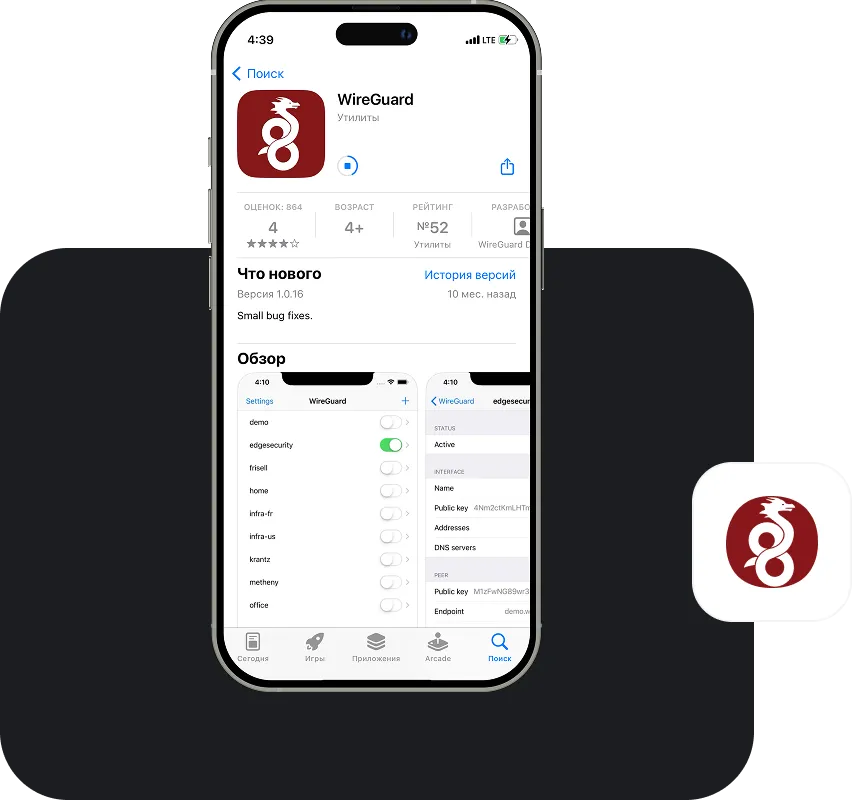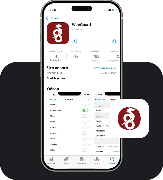 Скачать WireGuard можно с официального сайта или из магазинов приложений — App Store, Google Play. Для ПК доступны версии WireGuard Windows, macOS, Linux и даже клиенты для роутеров Keenetic и MikroTik