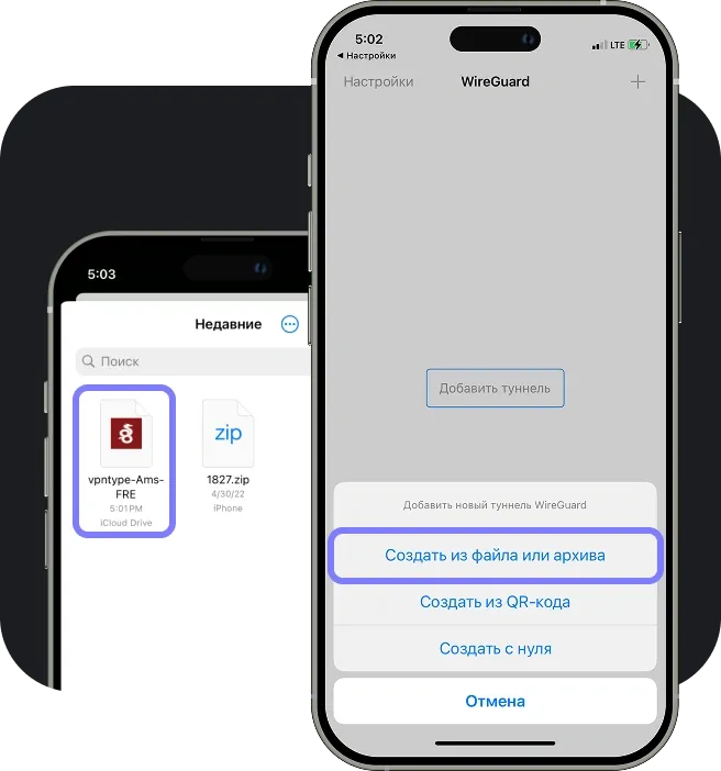 Загрузите приложение WireGuard, чтобы подключиться к VPN, добавив ключ конфигурации.